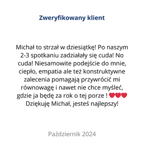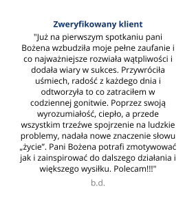 "W obliczu trudności towarzyszę w odnajdywaniu drogi do ulgi, spokoju i wytchnienia. Pomagam innym sięgnąć po życie, za którym zawsze tęsknili, ale nie zawsze mieli odwagę albo nie wiedzieli, jak się za to zabrać".